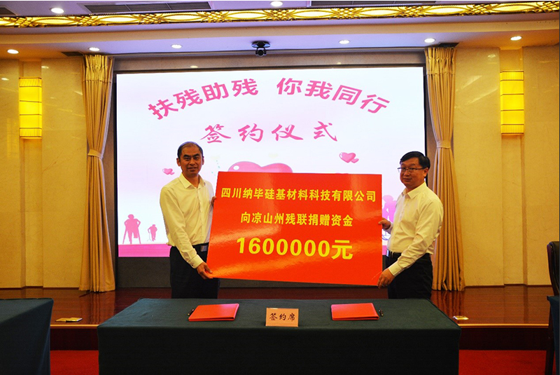 四川纳毕硅基材料科技有限公司始终秉承“爱国守法,勤俭拼搏;感恩社会,救助贫弱”的价值理念,积极践行社会责任,回报社会各界的关爱。未来公司将继续携手政府及社会各界人士,共同为需要帮助的困难同胞提供爱心援助。
